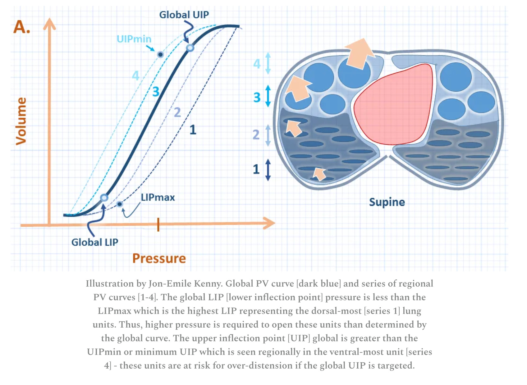 This engages the concept of transpulmonary pressure (the isolation of “lung stress” from the greater respiratory system) and adds another layer of complexity to the aforementioned equations, but the net result (as most clinicians are aware) is that more PEEP may be needed to prevent alveolar collapse.