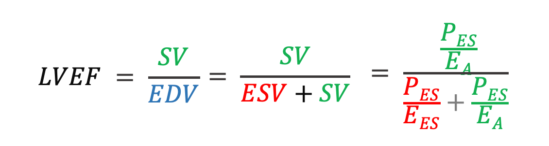 Therefore, LVEF may be equally described as the ratio of Ees [e.g., inotropic state] to the Ees plus Ea [i.e., afterload], that is, ventriculoarterial coupling [3]!