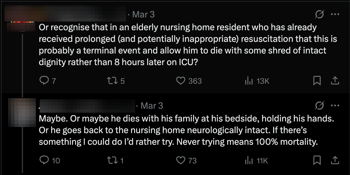 When to stop CPR is a difficult decision that should be “patient-centered,” but owing to the circumstances, rarely can be. We touched on some of that complexity in our ongoing series: