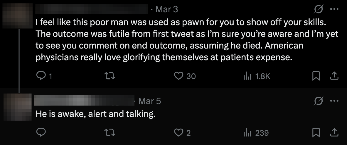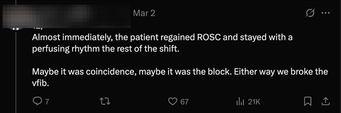X/MedTwitter erupted in 2025 when a U.S. emergency physician described performing SGB on an elderly patient with out-of-hospital cardiac arrest from refractory VF.