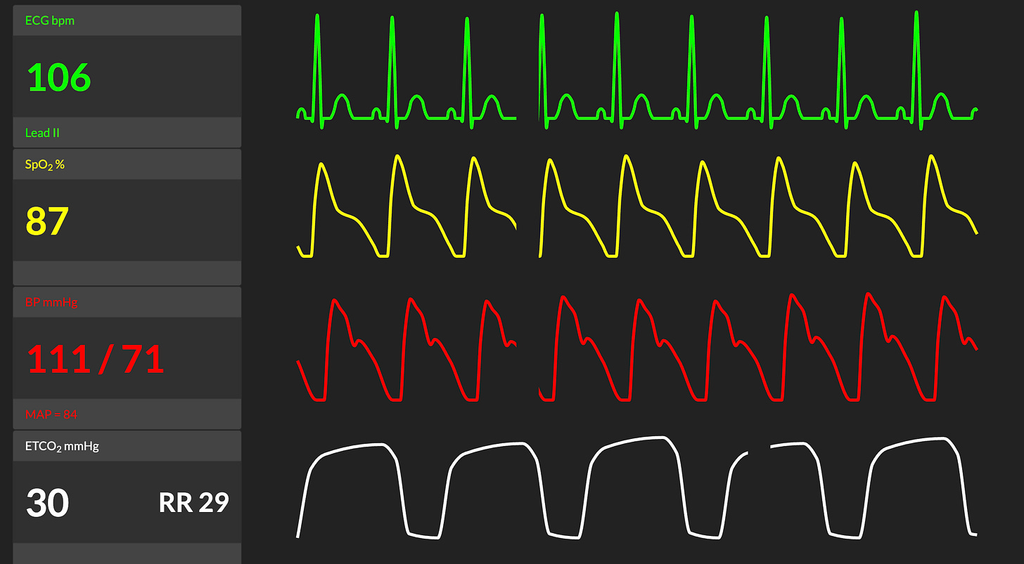 He is placed on non-rebreather oxygen. Vitals 10 minutes later are: