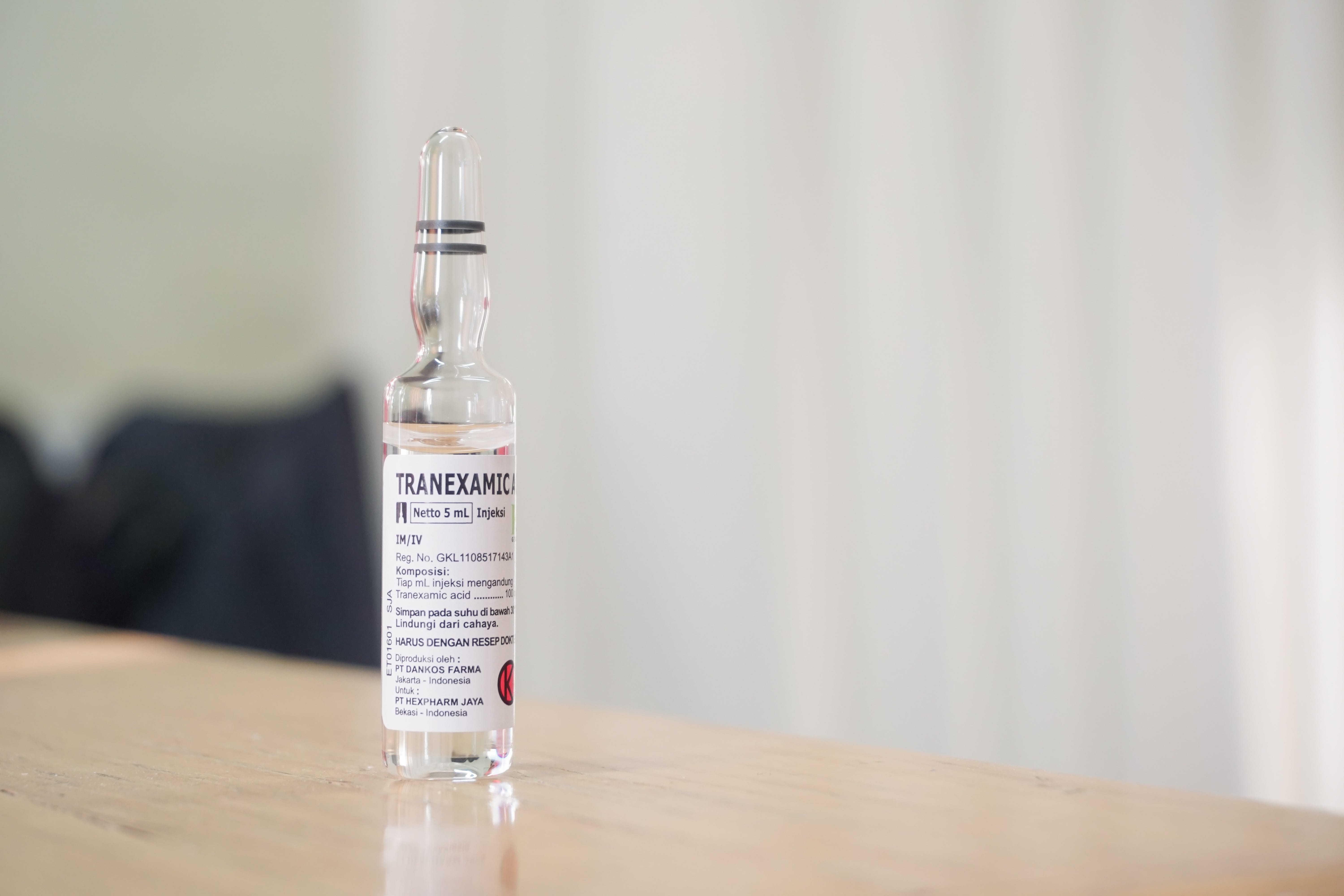 Tranexamic acid (TXA) is a synthetic molecule derived from the amino acid lysine. TXA helps induce coagulation through antifibrinolytic effects by reversibly blocking lysine-plasminogen binding sites. This slows plasminogen’s clot-dissolving activity.